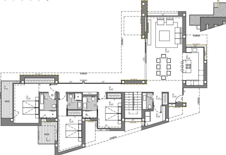 Het slaapgedeelte omvat drie dubbele slaapkamers, elk met een en-suite badkamer. Twee slaapkamers beschikken bovendien over een privéterras, zodat u ook hier volop van het uitzicht en de zon kunt genieten.