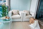 Dit appartement bestaat uit drie tweepersoonsslaapkamers, twee badkamers, waarvan één en-suite met een hydromassagebad en de andere badkamer met een royale douche. De woonkamer geeft toegang tot een groot terras met voldoende ruimte voor een grote tafel om van het mooie weer te genieten, daarnaast is er ook ruimte om een comfortabele bank te huisvesten om te ontspannen en te genieten van het uitzicht op de omgeving van het zwembad en te zien de zee aan de horizon.