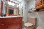 Na dit gedeelte leidt een kleine gang naar de volledig uitgeruste, onlangs gerenoveerde keuken, een slaapkamer met ingebouwde kleerkasten en een familiebadkamer met douche. Er is ook een trap die naar de bovenverdieping leidt. Op de eerste verdieping is aan de rechterkant een tweepersoonsslaapkamer en een familiebadkamer. Aan de linkerkant is nog een tweepersoonsslaapkamer met ingebouwde kleerkasten en de hoofdslaapkamer met ingebouwde kleerkasten, een en suite en een prachtig privéterras met uitzicht op zee. Net voor de voordeur is er een gezellige naya met een eettafel en stoelen, een gebied en een kleine tuin. De bungalow heeft toegang tot het gemeenschappelijke zwembad en de tuinen en heeft een parkeerplaats en berging. De bungalow heeft airconditioning en verwarming en er zijn plafondventilatoren in de woon- en eetkamer en alle slaapkamers behalve één op de bovenverdieping. Alle ramen hebben houten luiken.